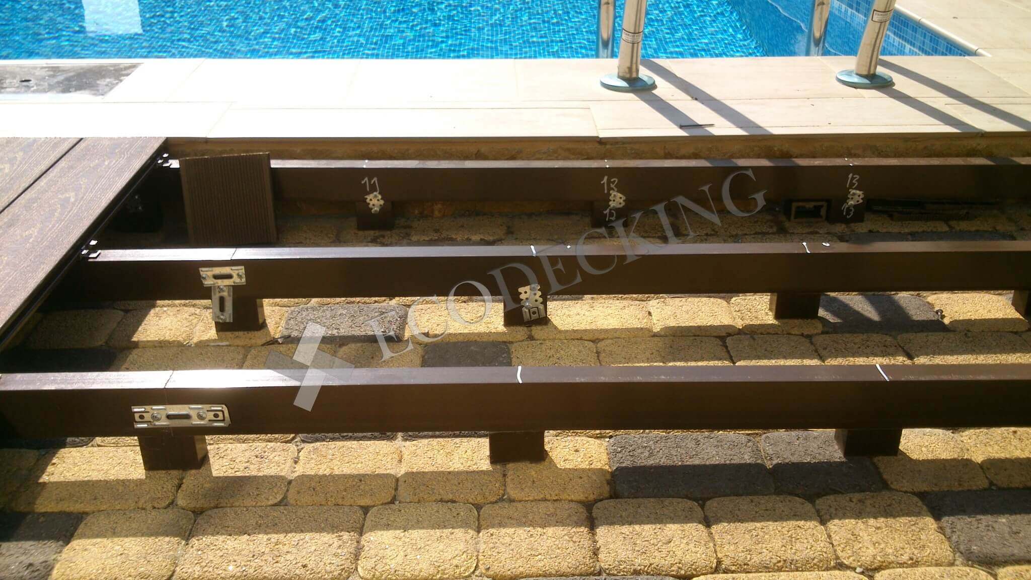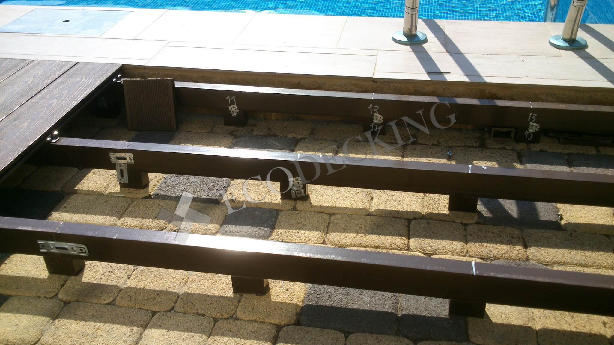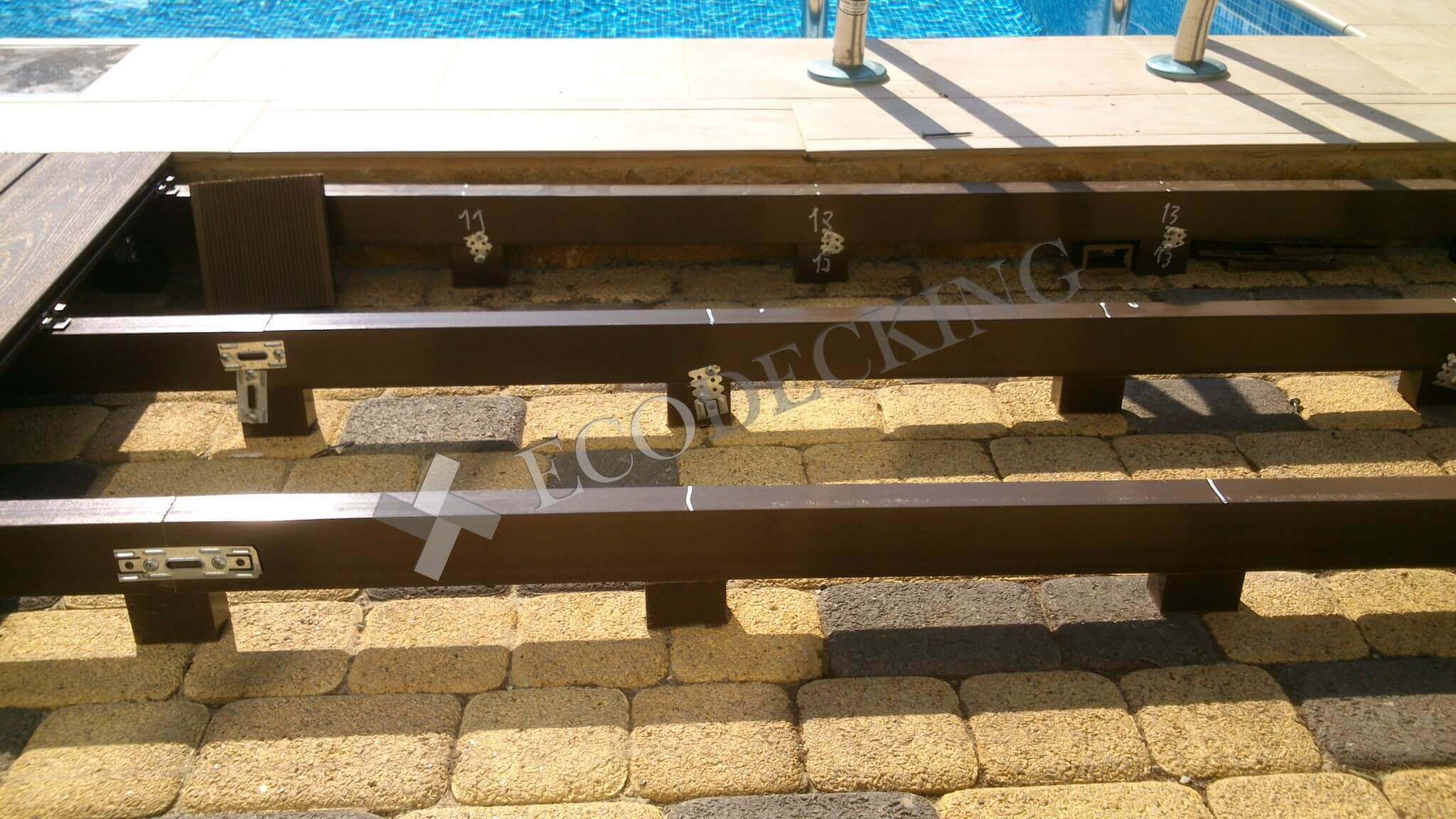 Если у вас во дворе есть даже небольшой бассейн, то рано или поздно вы задумаетесь о монтаже террасной доски вокруг него, как и наш заказчик с улицы Передерия в г.Краснодаре. Декинг ДПК не боится влажной среды и перепадов температур, не выцветает на солнце и не гниет, он сохраняет свой первозданный внешний вид, и производитель не боится давать 10 лет гарантии. Поверхность палубной доски из ДПК не скользкая и теплее, чем плитка. Монтаж террасной доски под силу даже человеку, который никогда не держал в руках строительный инструмент. Но если вы хотите получить идеальный результат, доверьте эту работу профессионалам компании ECODECKING.